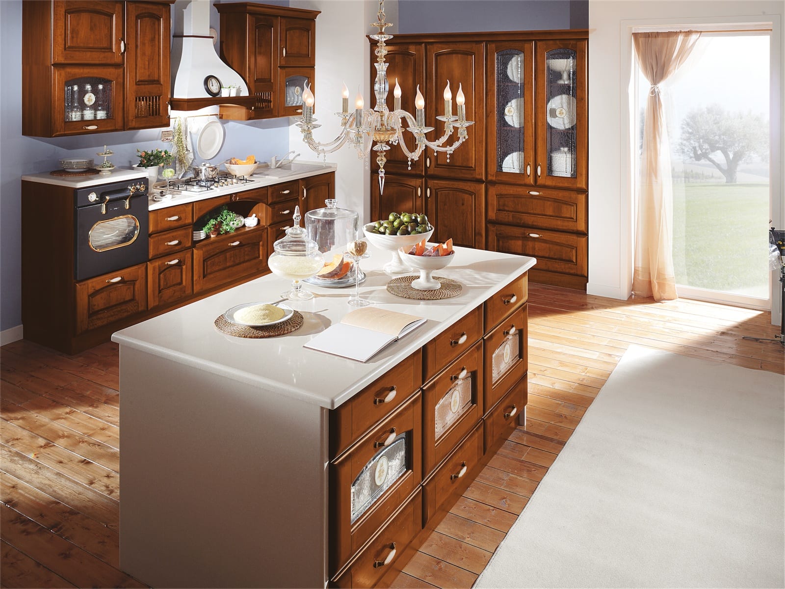 Una visione romantica e dolce che si fonde con le linee e volumi armonici del design classico. Una grande cucina senza tempo, capace di creare l’atmosfera calda e avvolgente di un abbraccio.